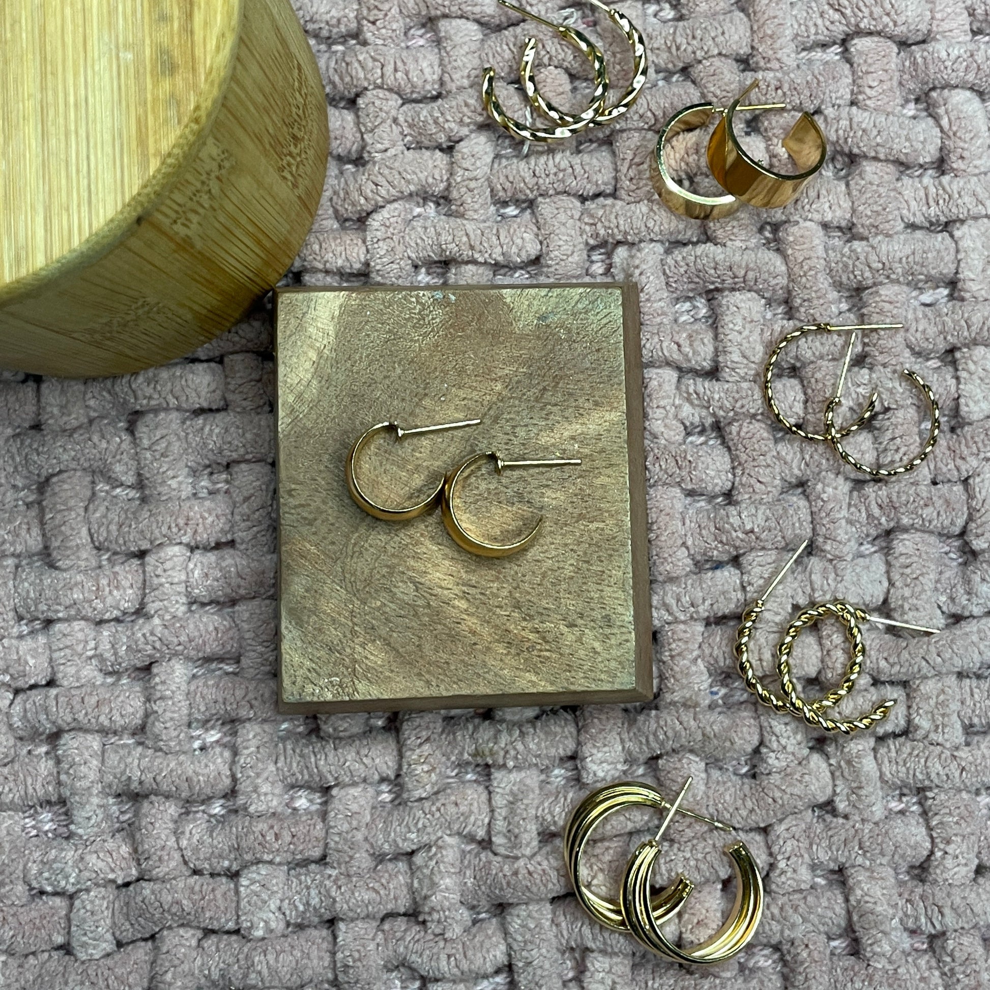 These lustrous gold-toned hoop earrings feature elegant twisted rope detailing that catches light beautifully from every angle. A timeless design that effortlessly elevates any look with sophisticated metallic warmth.