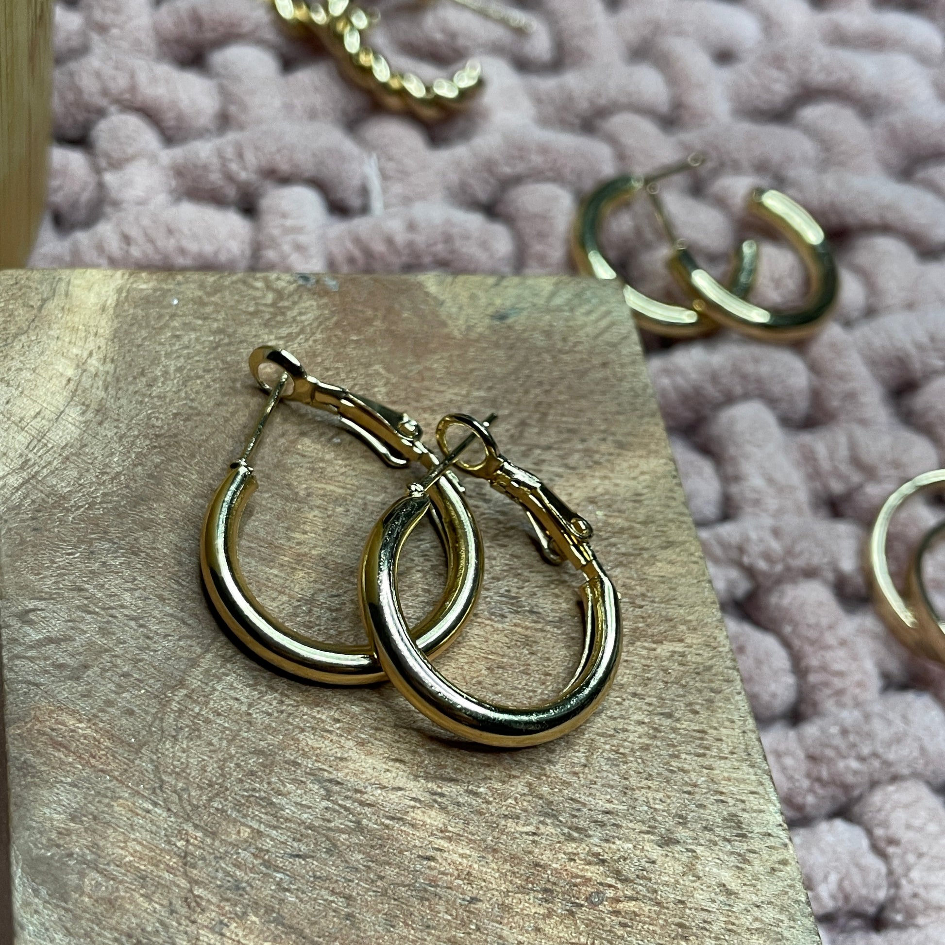 Chunky dome-shaped hoops with a glossy gold finish. Retro-inspired and confident, perfect for making a statement with minimal effort.