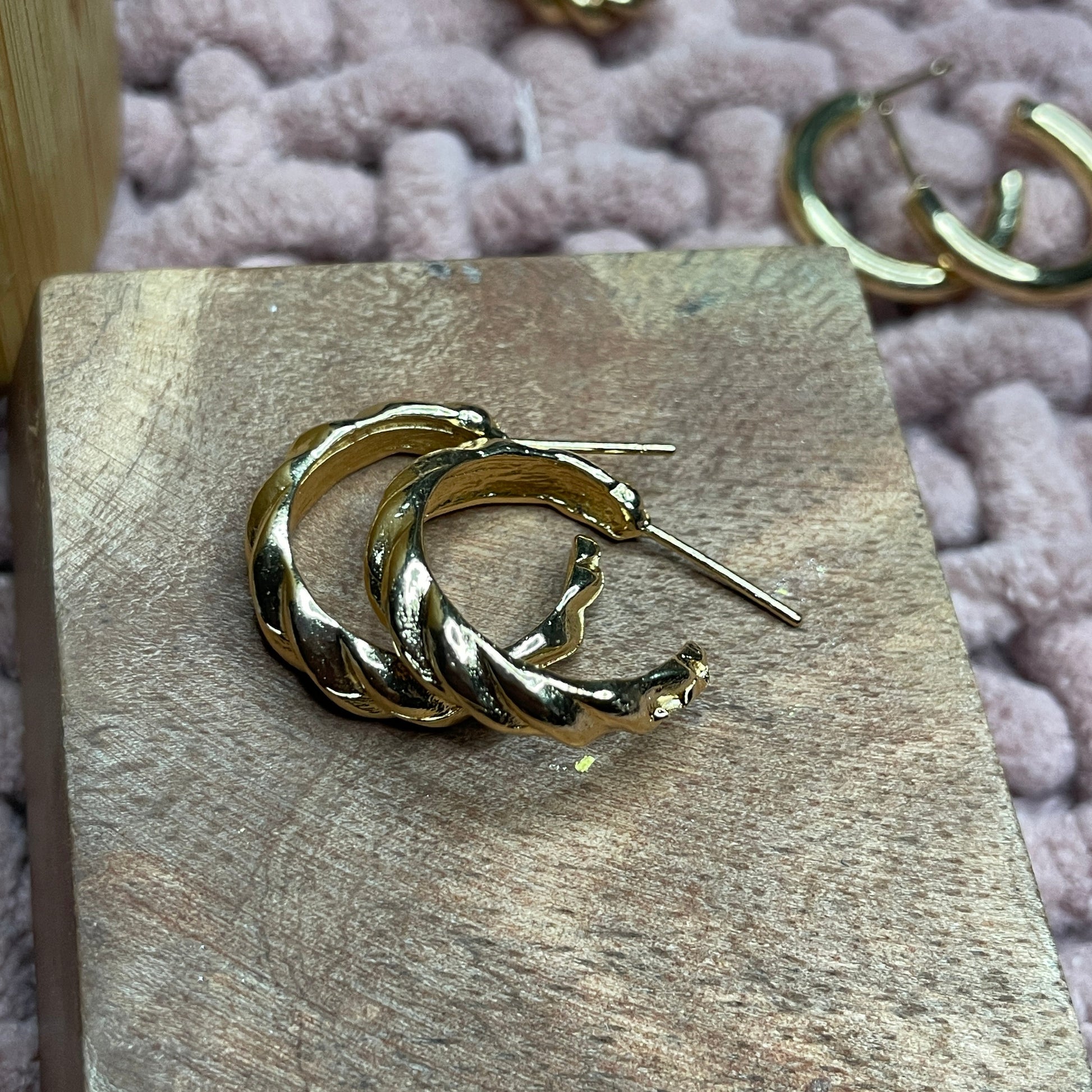 Lightweight hoops with a fluid, wavy silhouette and a hammered surface. They exude a handcrafted, artistic charm-great for adding subtle drama.